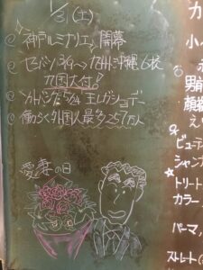 …弟に連絡つかん!?どうして?とバタバタした夢!?で目が覚めたら、お客様が来る30分前…慌てました…そして、コノ時間…こんにちはです♪今日は黒板ナシで…あっ夜はカラーの勉強会に行くんで定時で終わらせていただきます。明日は寝坊せずに…(^-^)