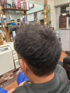 投稿日: 2025年10月25日2025年10月25日 投稿者: 岩井英行お客様no1024 全頭7cmぐらいの2ブロックスタイル、トップが薄くなって腰もなくなってきたんでスパイクパーマしてボリュームアップ⤴️いっしょに8レベルのアシッド系で白髪染めも!…久しぶりのパーマスタイル!何か良いことあるんですか^_^?