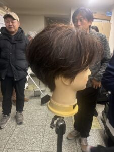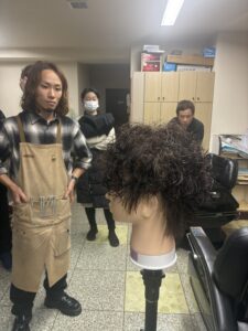 投稿日: 2025年11月21日 投稿者: 岩井英行組合講習会 本田講師によるフェザーパーマとシャドウパーマの2点ば披露していただきました。薬剤の使い方、カットのポイント、ロッドの巻き方等々勉強に…自主トレしないと!