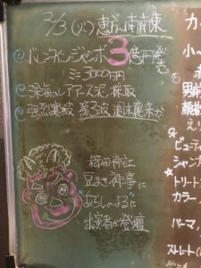 お一人で矢沢永吉さんが来店!?カットしながらサイン欲しいけど色紙ないし、どうしよう?…あっまた来るように仕掛けてみよう!と策を考えながらチョキチョキ…でシャンプーを!ってとこで“水”使えないんだ…と、夢から覚めた‥……今朝でした。正夢か?色紙買っとこ