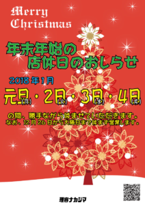 ようやく年末年始の店休日のおしらせポスターが出来上がりました。(^^;